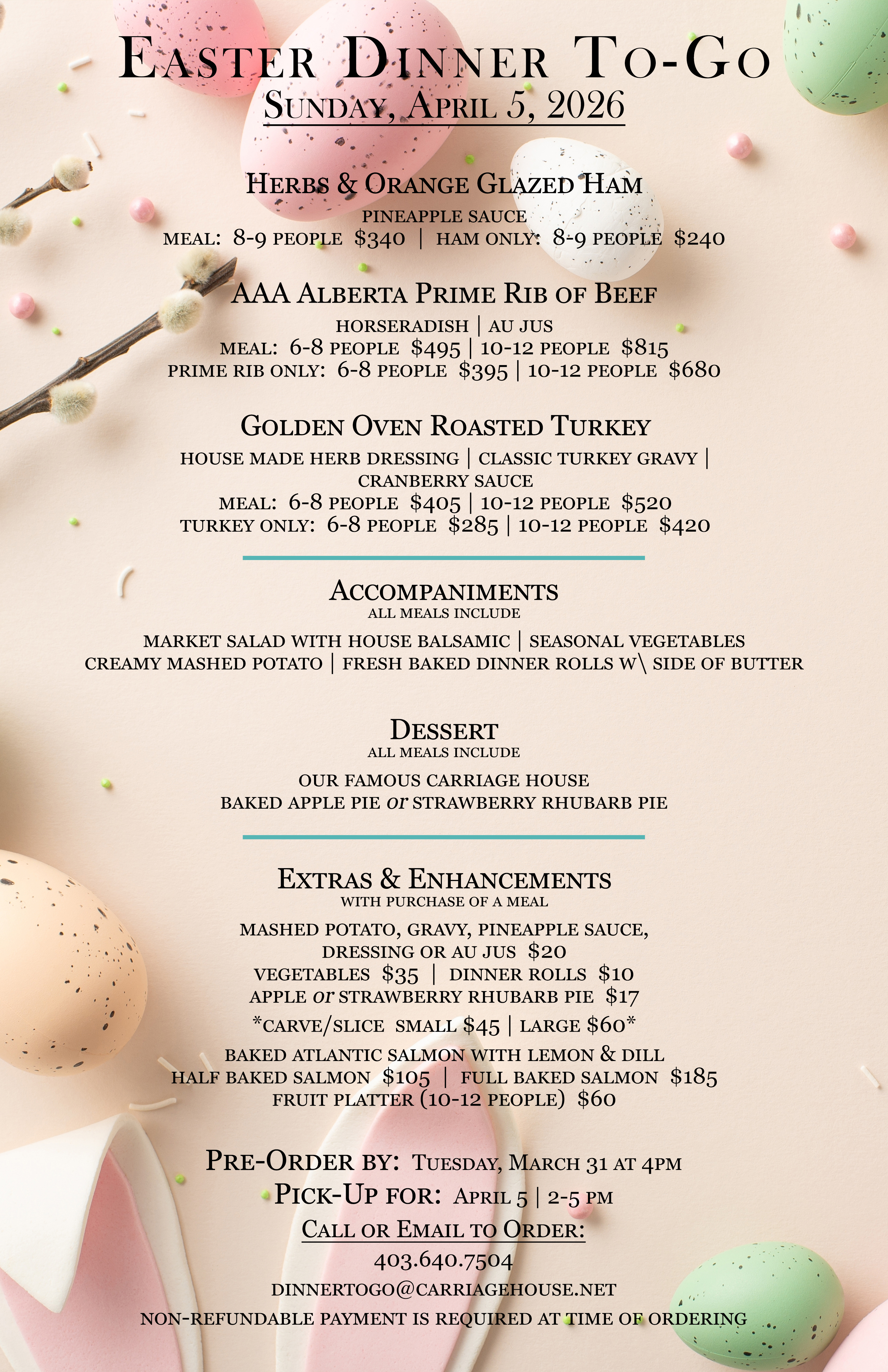 Whether you prefer a cozy dinner at home, a brunch buffet, or an evening served by our amazing team, let us handle the meal so you can focus on what matters most—time with family and friends.