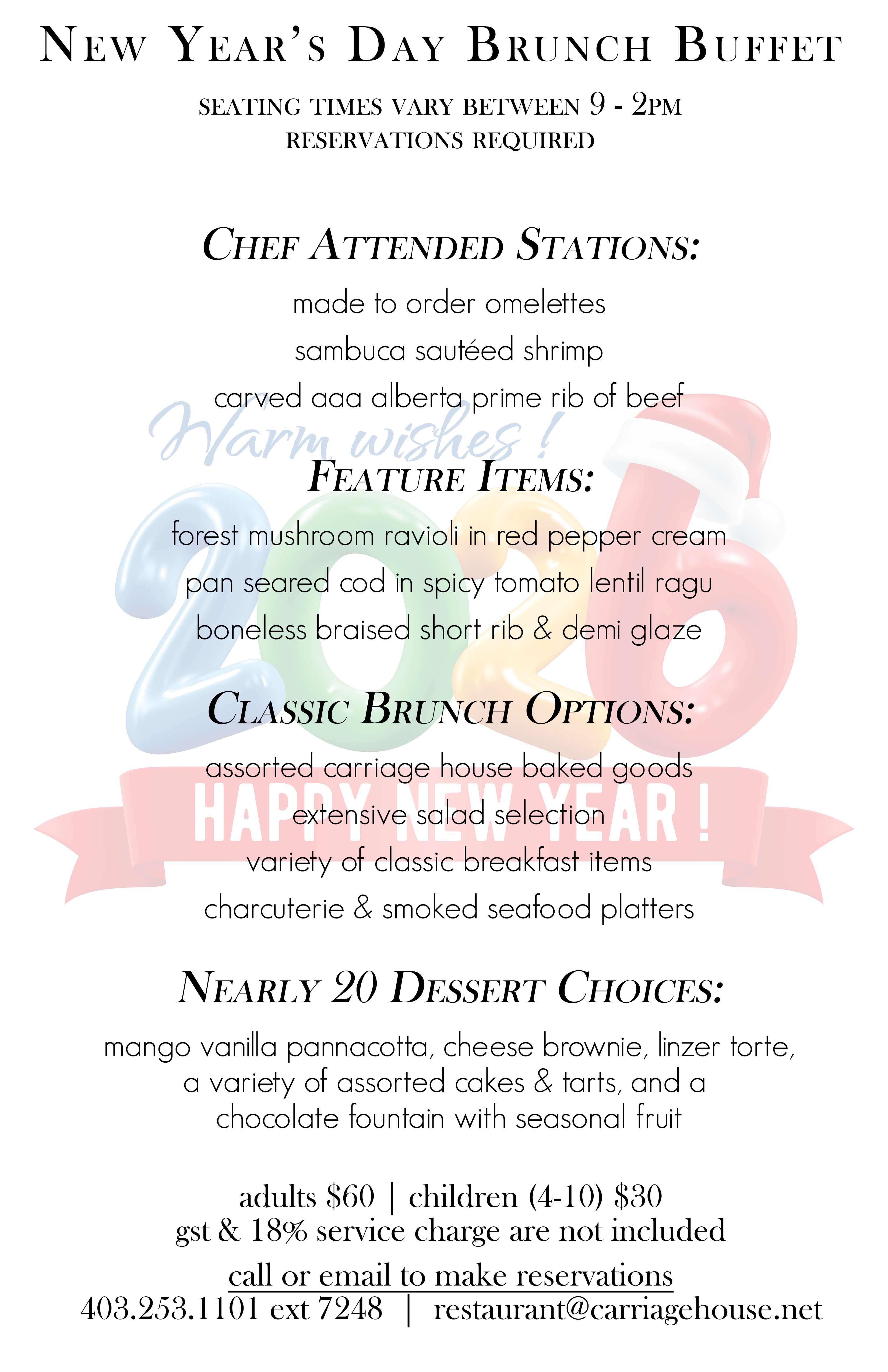 Our New Year's Day Brunch Buffet menu can be found below the list of dates. Reservations are required.